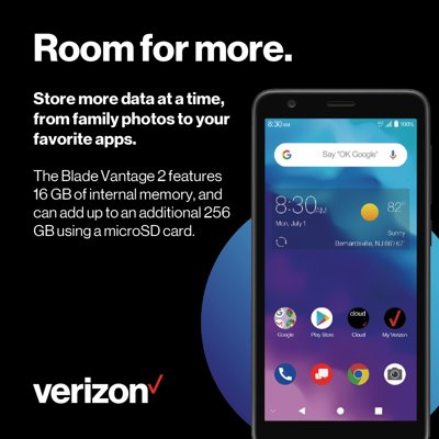It runs on a 2GHz Quad-Core MediaTek Helio A22 processor with 2GB of RAM 16GB onboard storage and 256GB memory expansion via a microSD card. Store your favorite memories using 16 GB of built-in storage. Verizon Wireless ZTE Blade Vantage 2 Cellphone 16GB - Prepaid Smartphone.